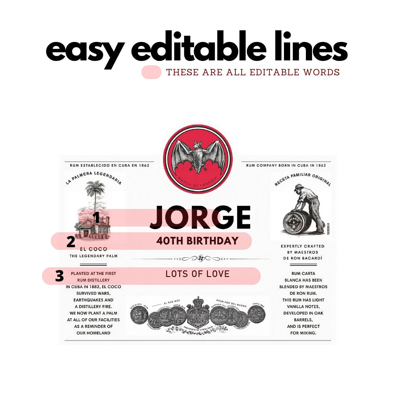 Personalized Rum Label editable Customize, whiskey Gift Ideas. Birthday Present, Anniversary and wedding. Funny Novelty Gift Birthday