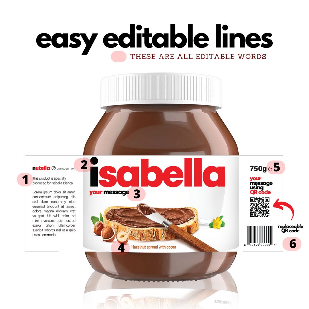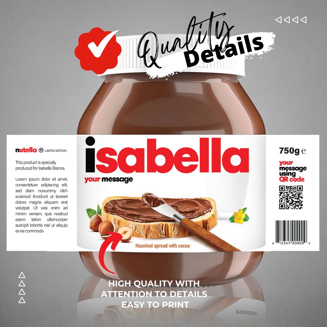 Printable Chocolate Spread Personalized Label Sticker Funny Novelty Gift Birthday Anniversary Customize, Realistic