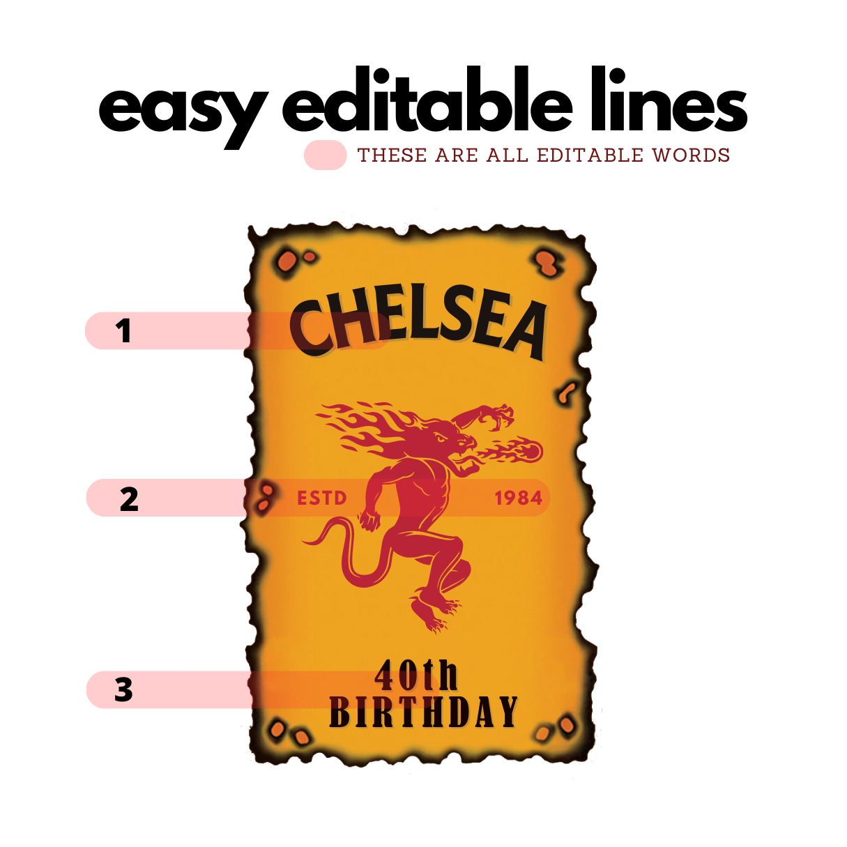 Printable Custom Fireball Whiskey Label Editable