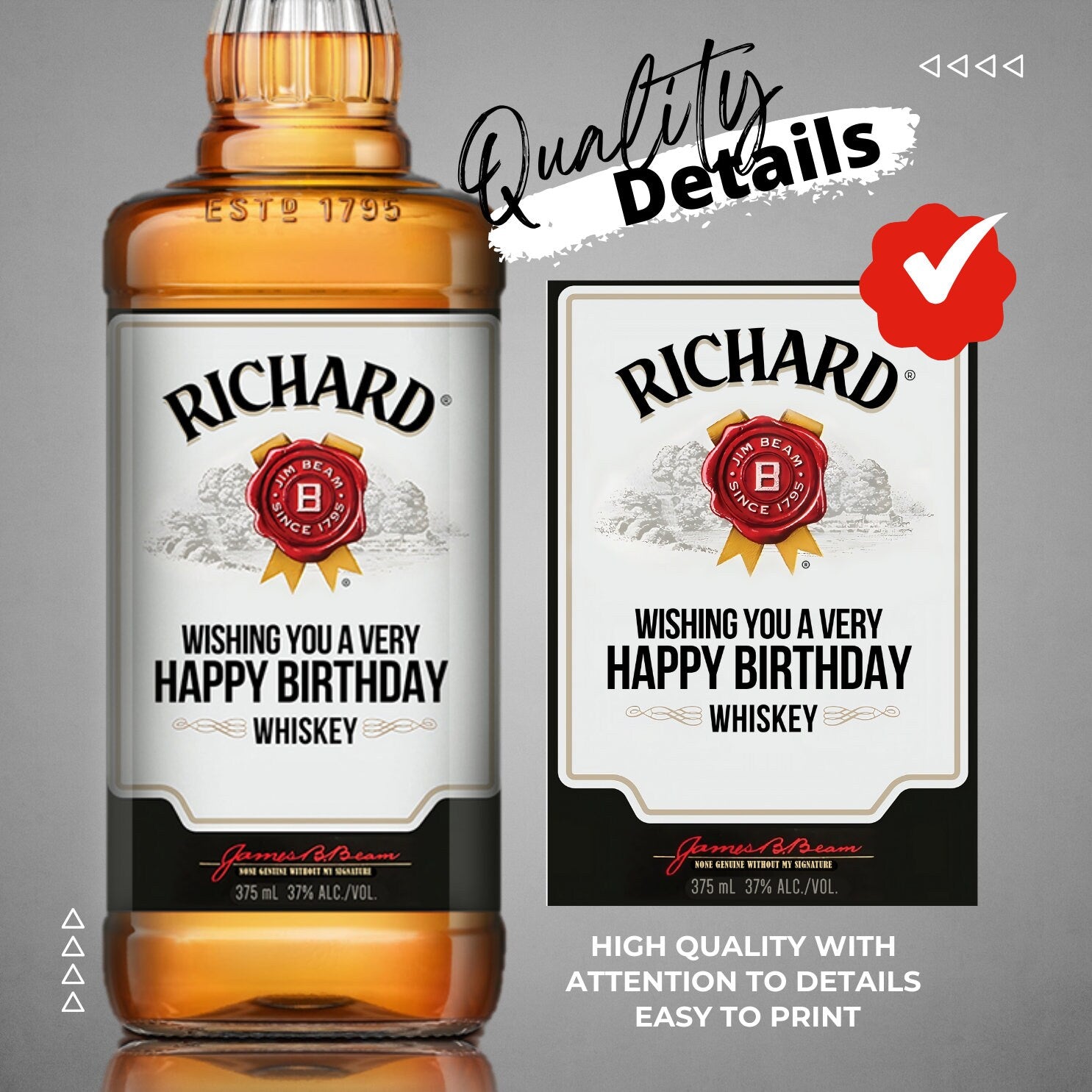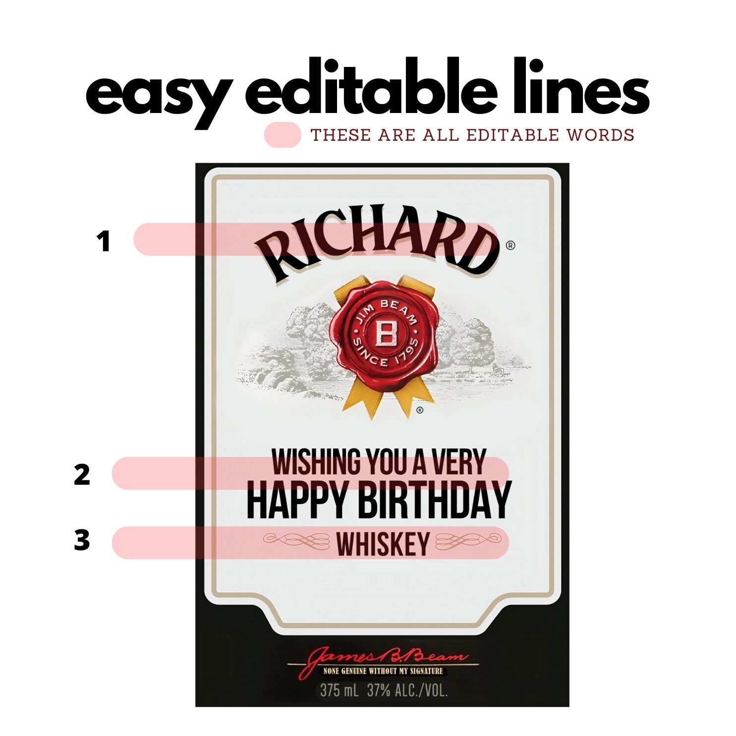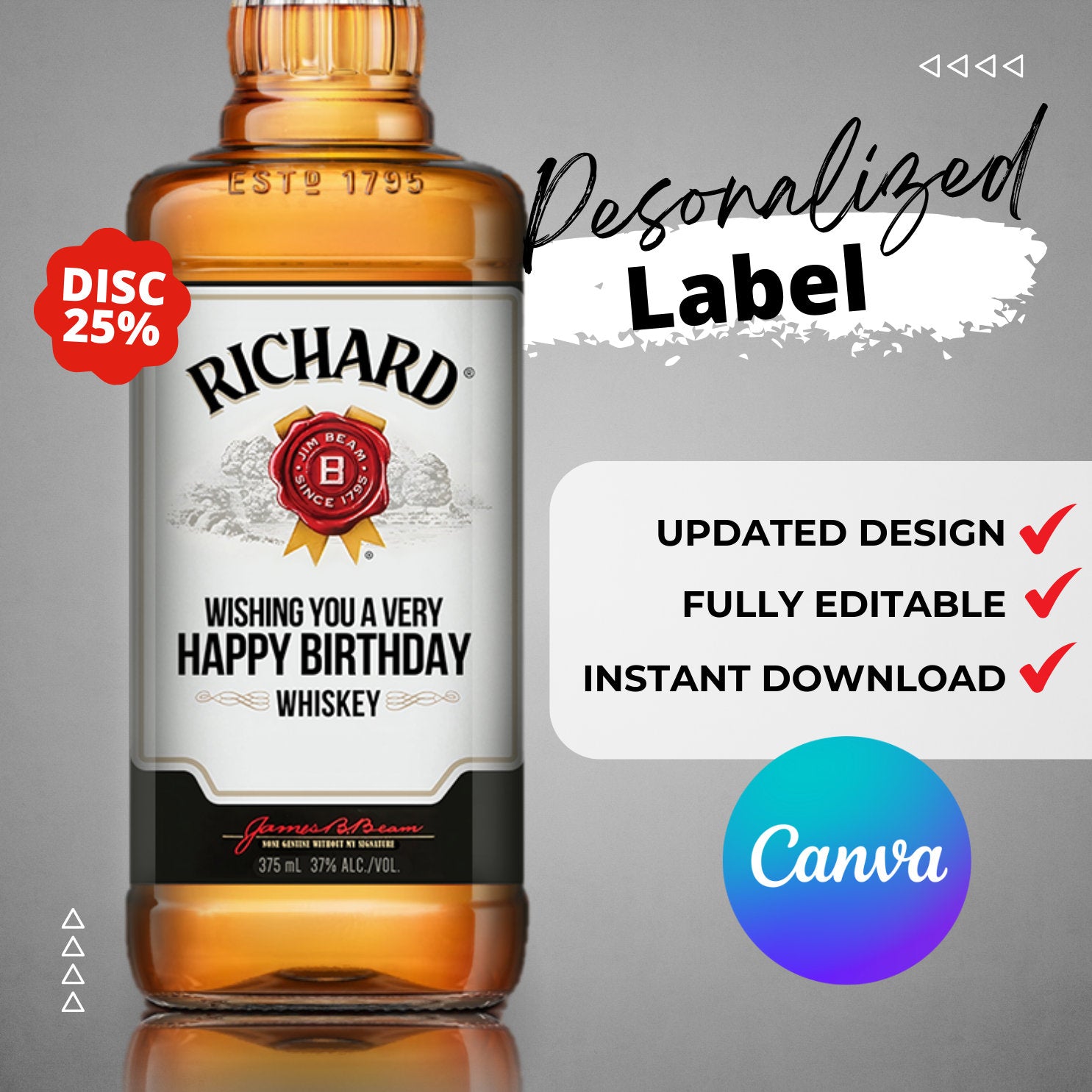 Printable Jim Whiskey Personalized wine liquor bottle labels editable Customize, Birthday Gift, Realistic Liquor Label.
