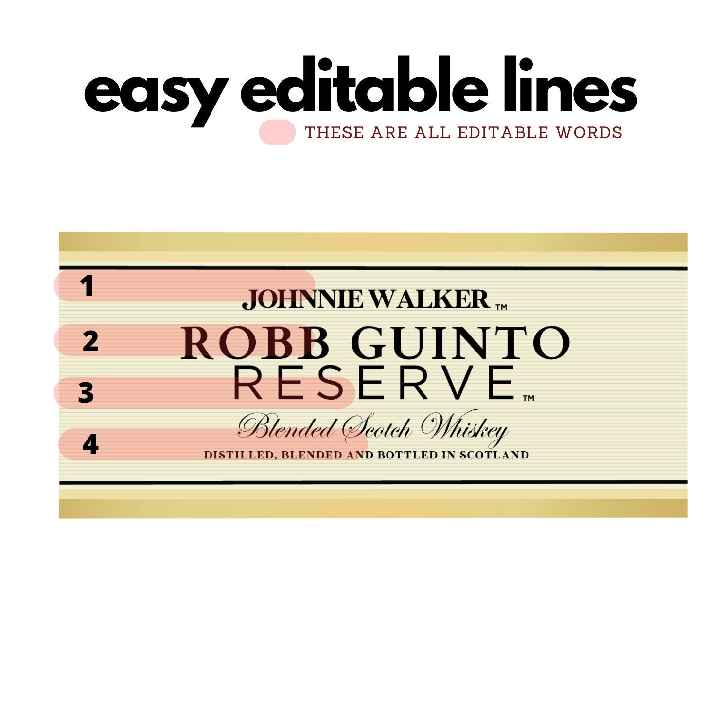 Printable JW Gold Label Reserve Personalized and Customize wine liquor bottle labels editable , Birthday Gift, Printable Realistic Liquor Label.