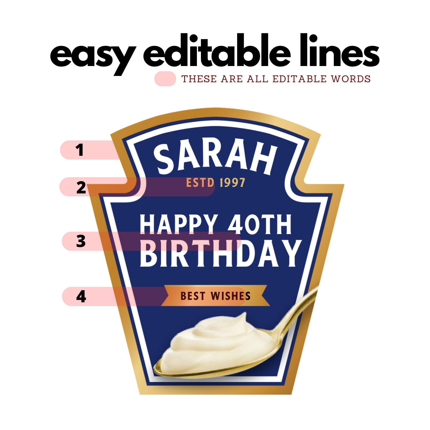 Printable Mayonnaise label editable Customize, Gift Ideas. Birthday Present, Kids gift. Instant download.
