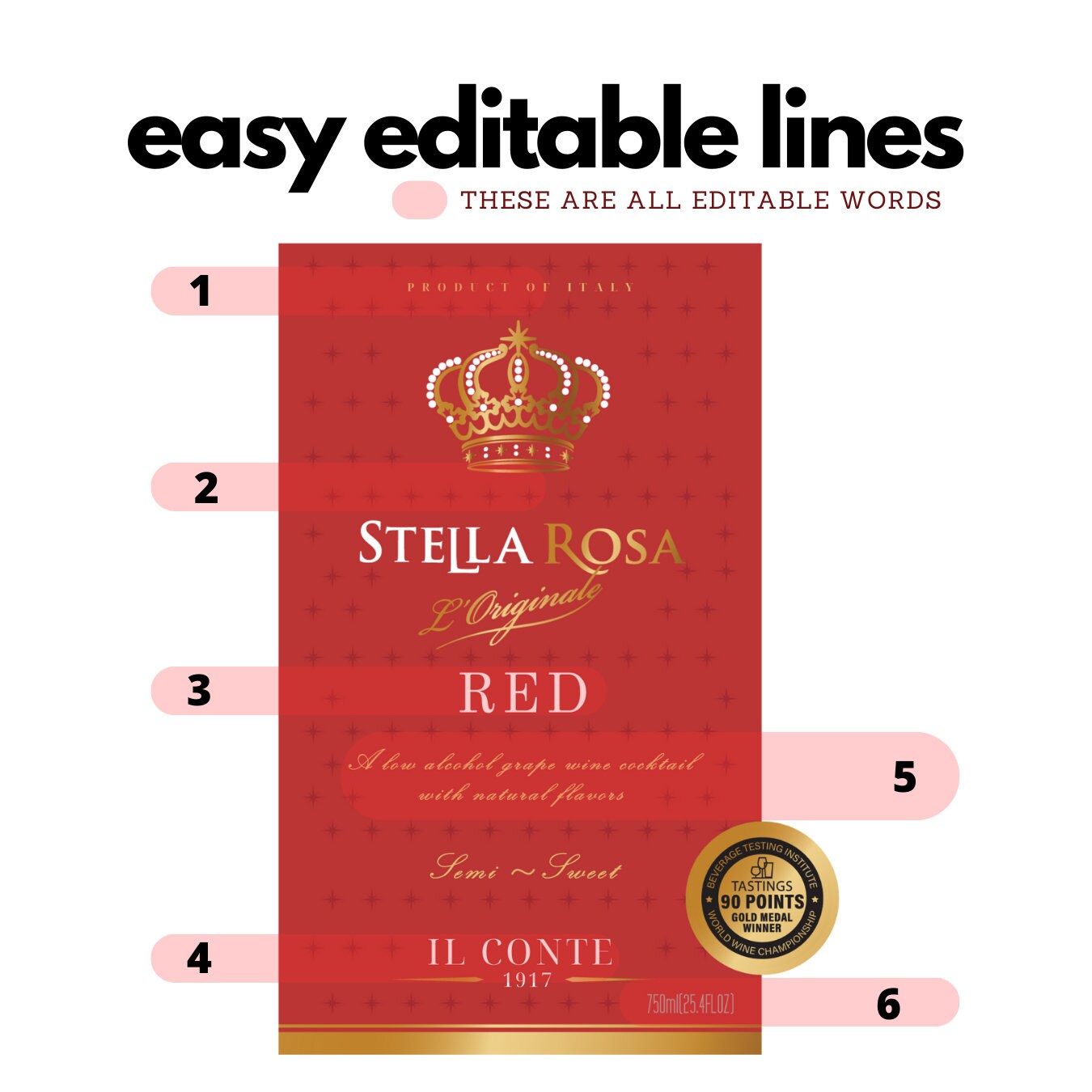 Printable Stella Rosa Red Wine Bottle label editable Customize, Wine Editable Label. Birthday Present Anniversary Wedding Gift.