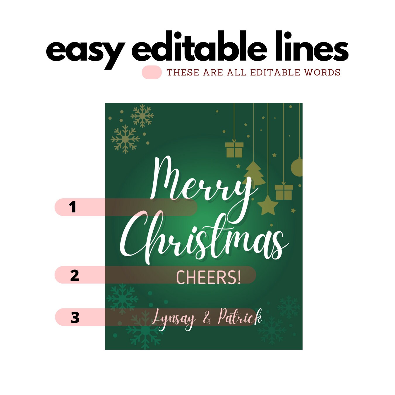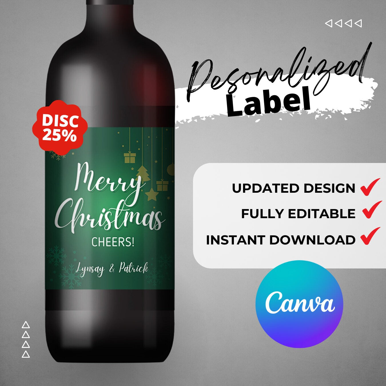 Printable Wine / Whiskey Green label 4"x5" editable Customize, Unique Christmas Custom Gift Ideas. Birthday Present, Christmas Party.