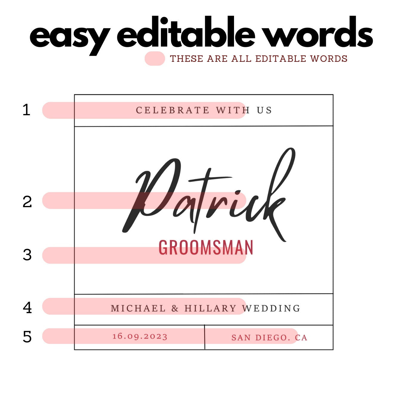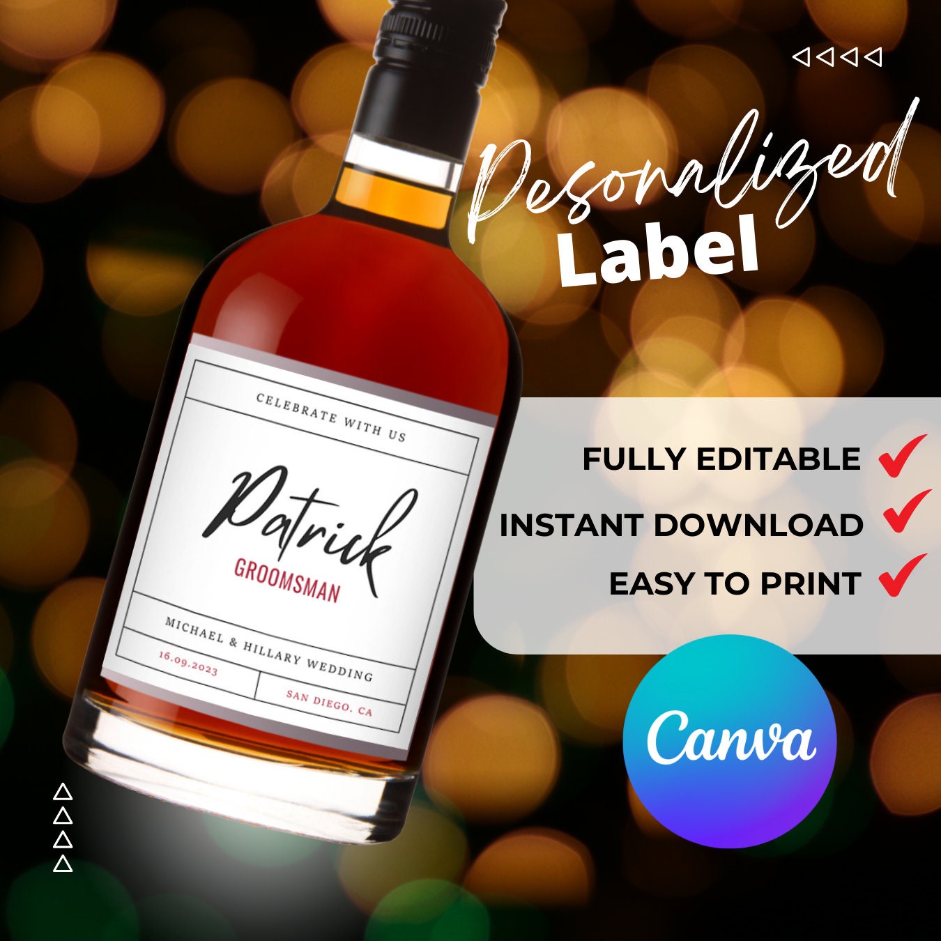 Printable Wine / Whiskey Groomsman label 4"x4" Bottle Label editable